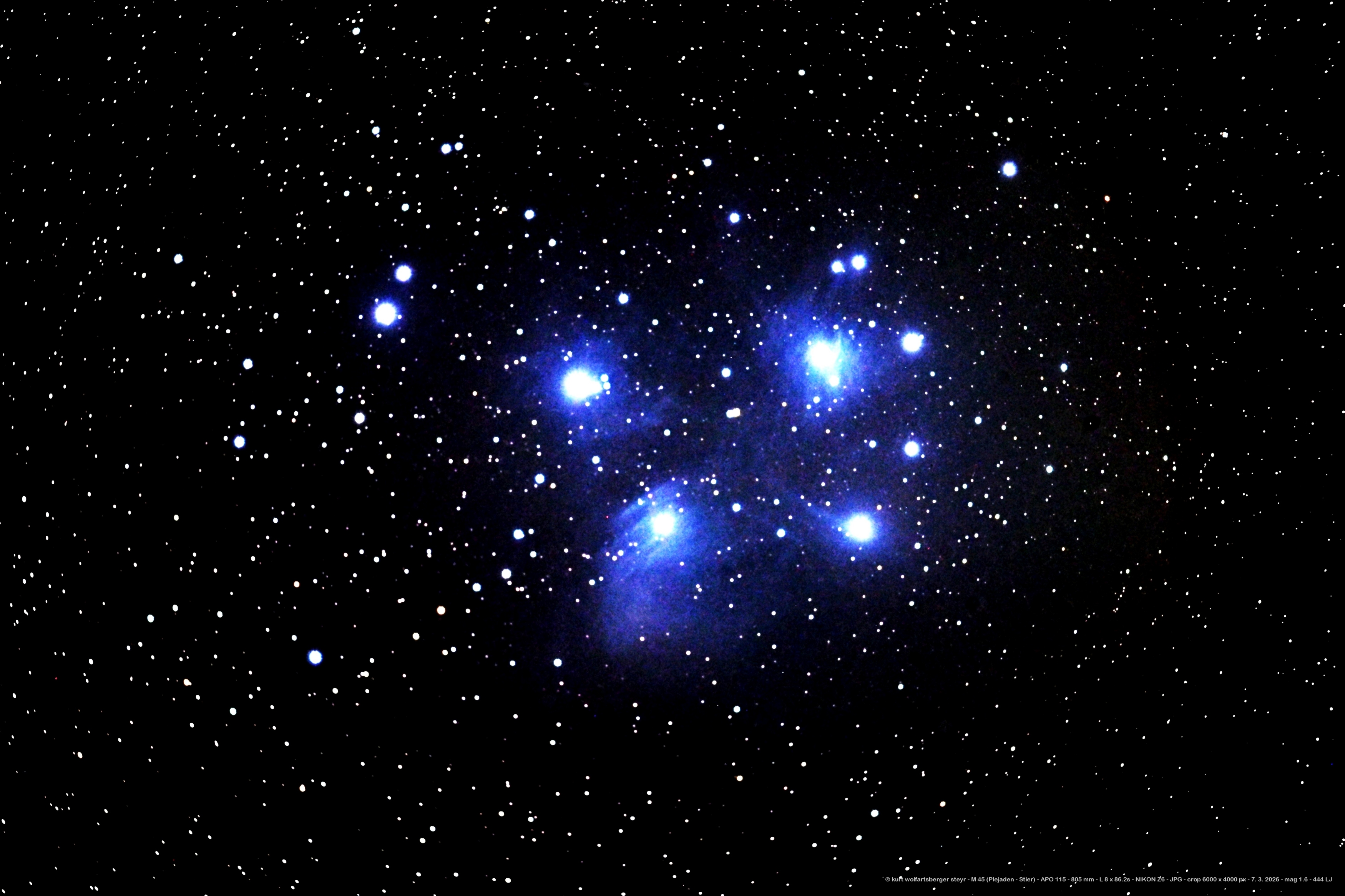 Hyaden und Plejaden M 45 im Sternbild Stier mit SONY A 100 --- Die Plejaden M 45 mit ED80 --- M 52 mit der NOVA Cass 2021 mit ED80