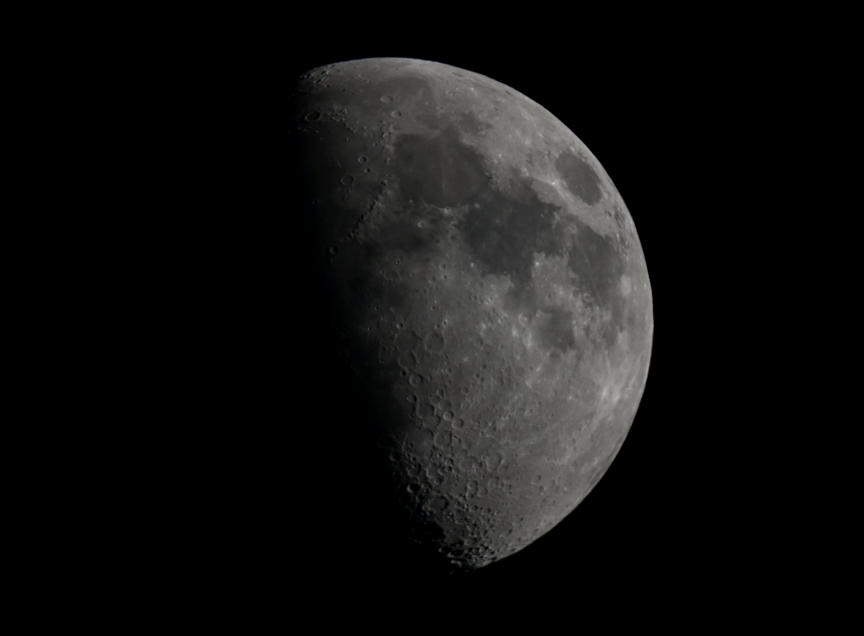 Zwei weitere Fotos mit AD80/600 auf EQM35 Montierung aufgenommen zeigen den Mond bei 40 % zunehmend (1/800 sec) und den Orionnebel M42 (Belichtungszeit 2 Minuten) beides mit SONY alpha58 im Hauptfokus aufgenommen.