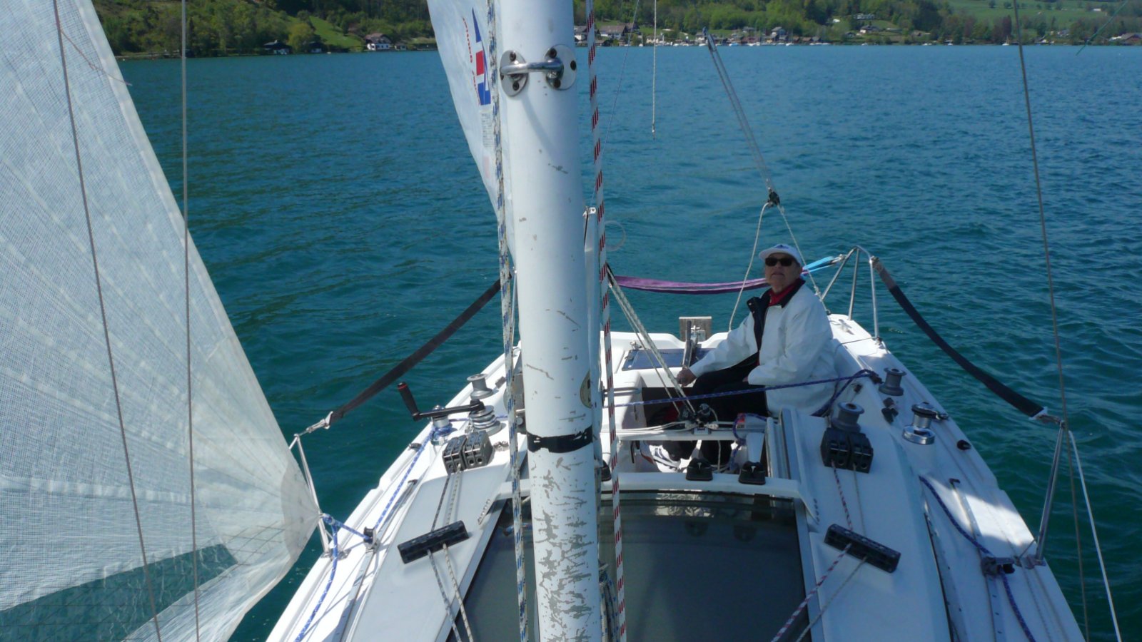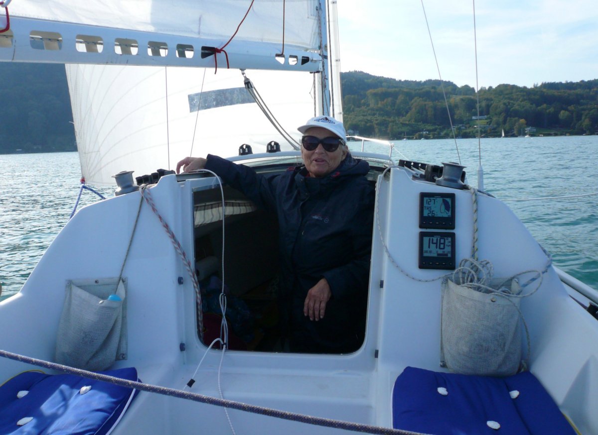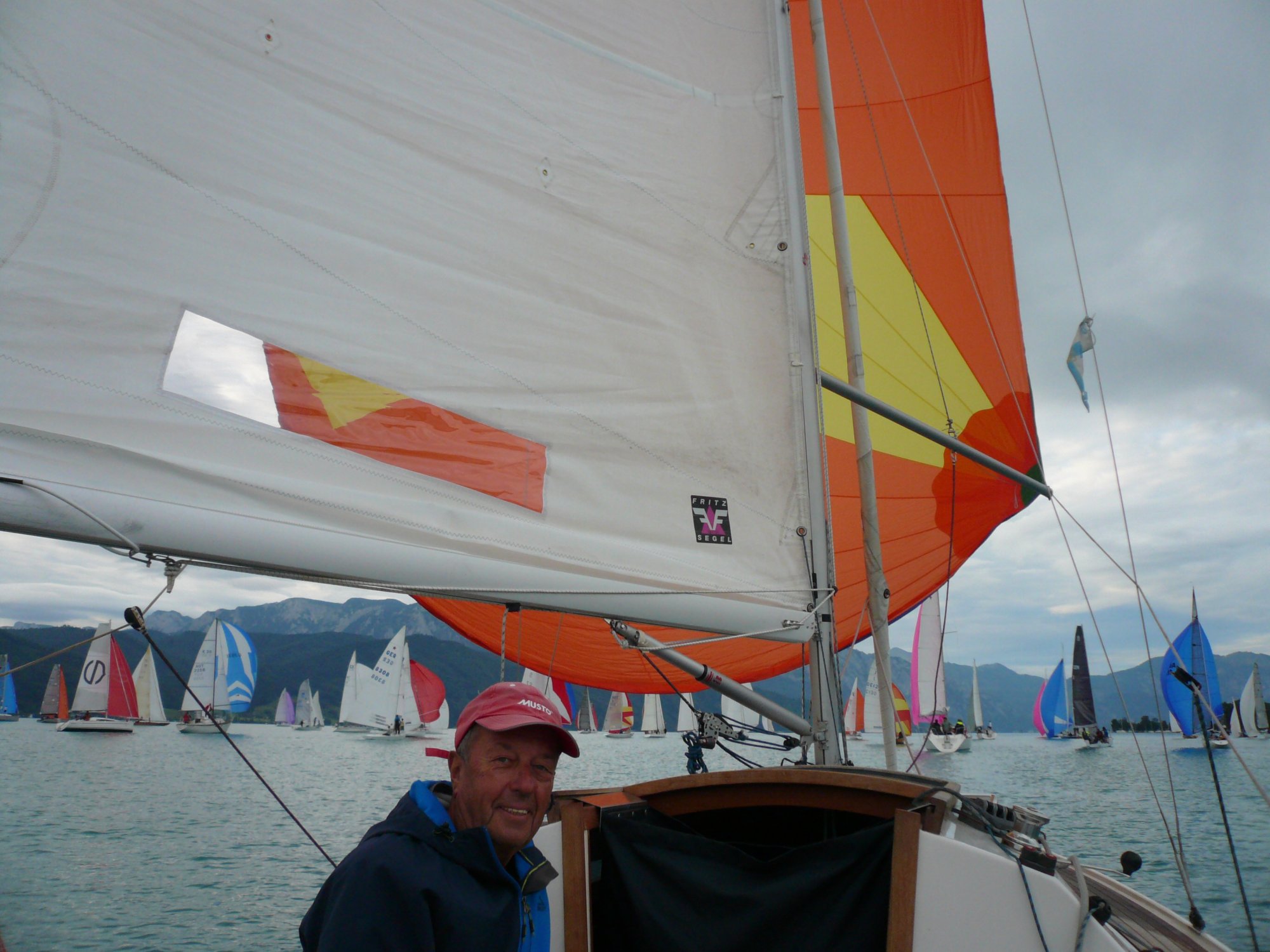 Helmut an der Pinne - Am Wind auf Backbord - Eine Boe vor Attersee - Steuerbord am Wind