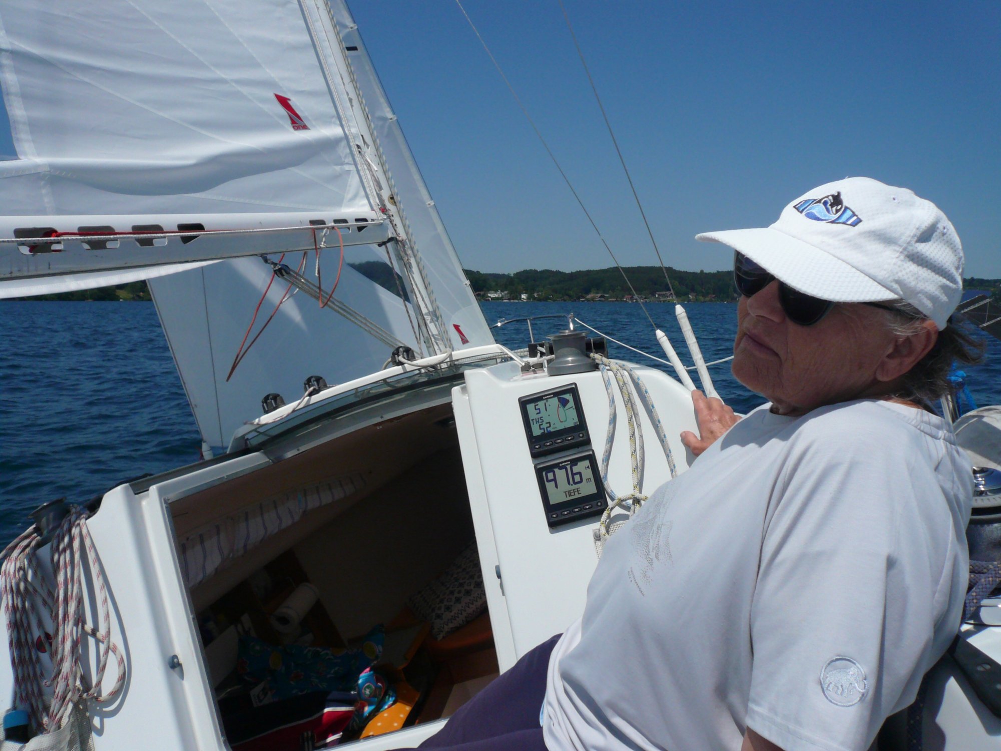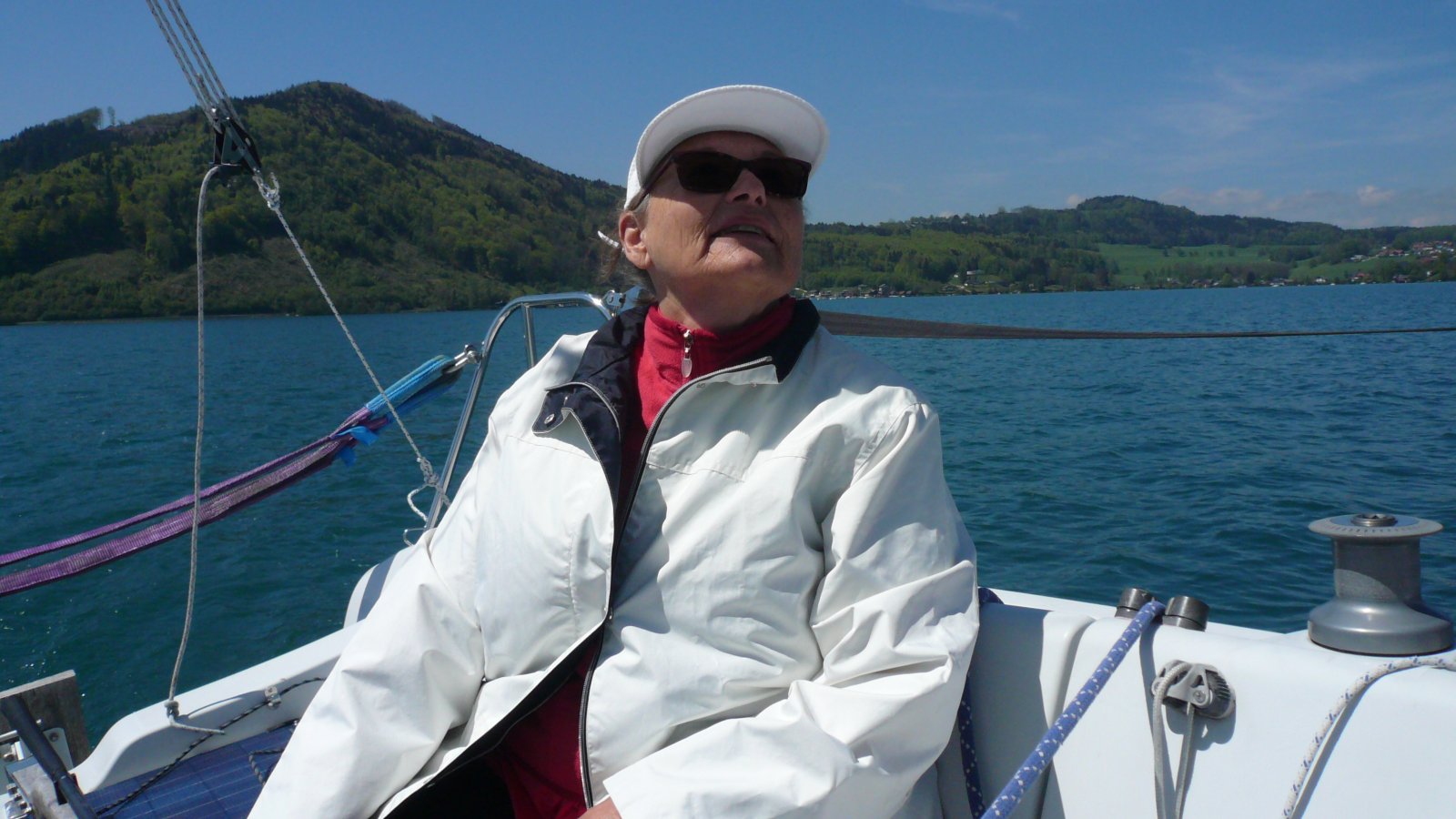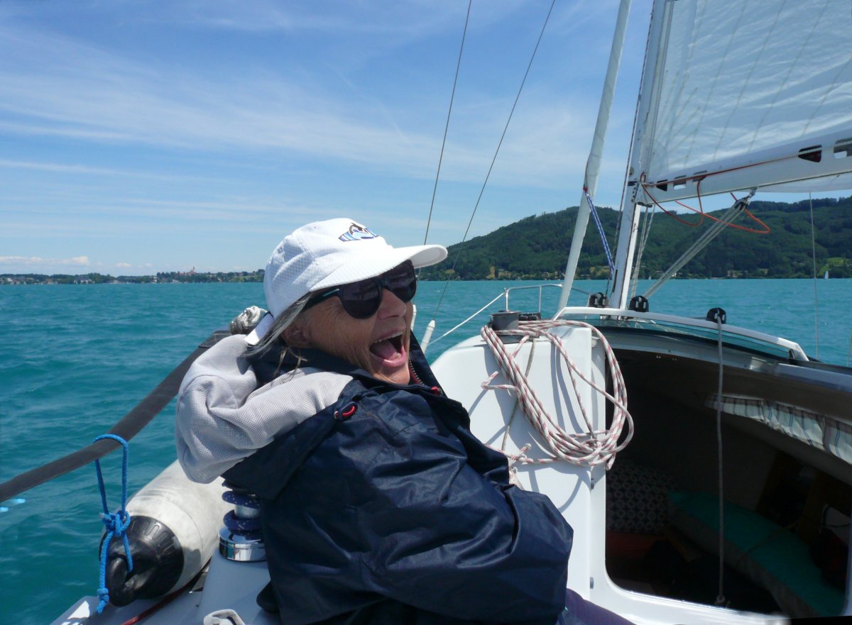Helmut an der Pinne - Am Wind auf Backbord - Eine Boe vor Attersee - Steuerbord am Wind