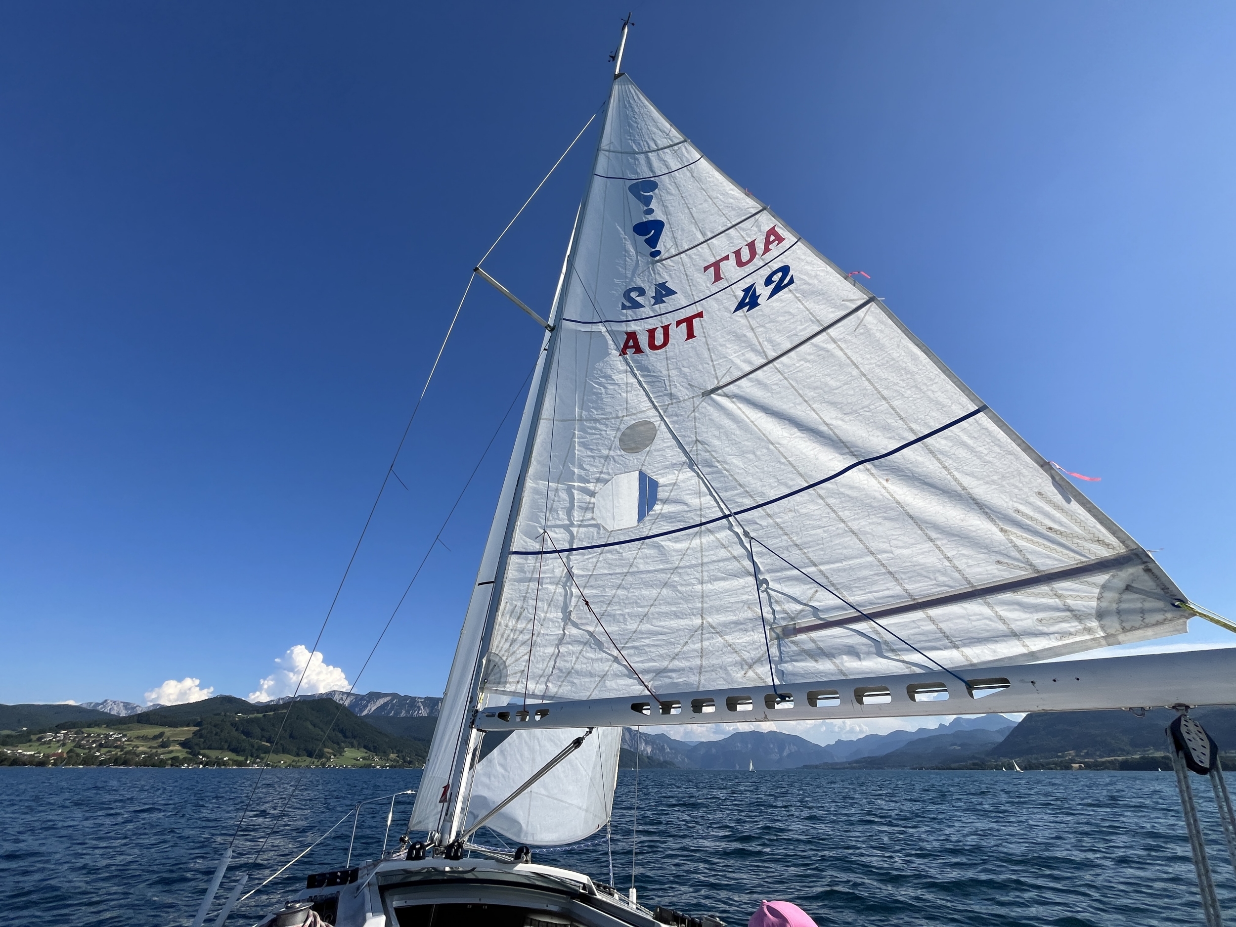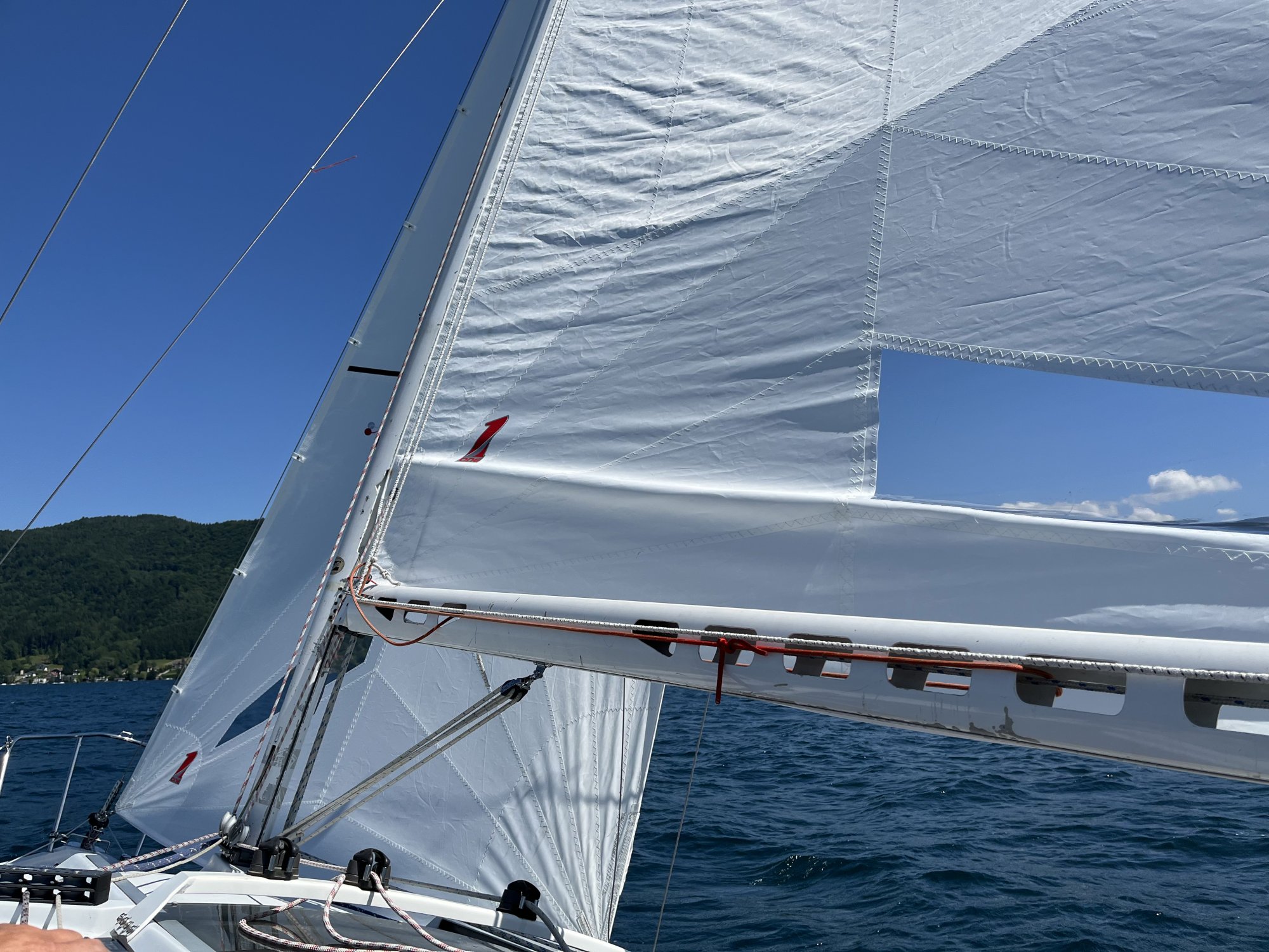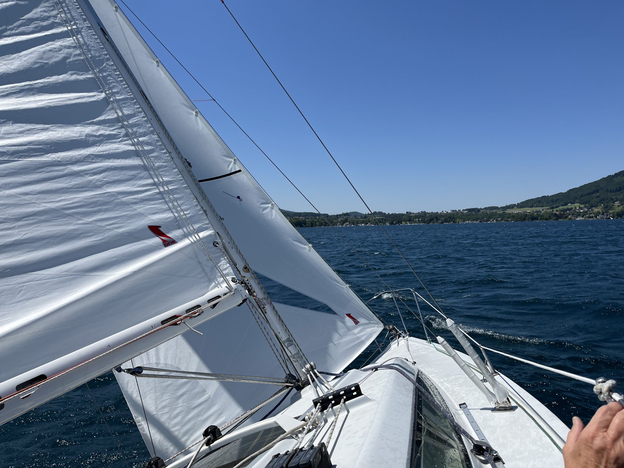 Nach der Schlechtwetterperiode waren wir am 17. Juni 2024 erstmals richtig segeln am Attersee. Der Wind war leicht und nicht stabil, aber aus Nord-Ost. Nach drei Stunden haben wir den Tag abgeschlossen.