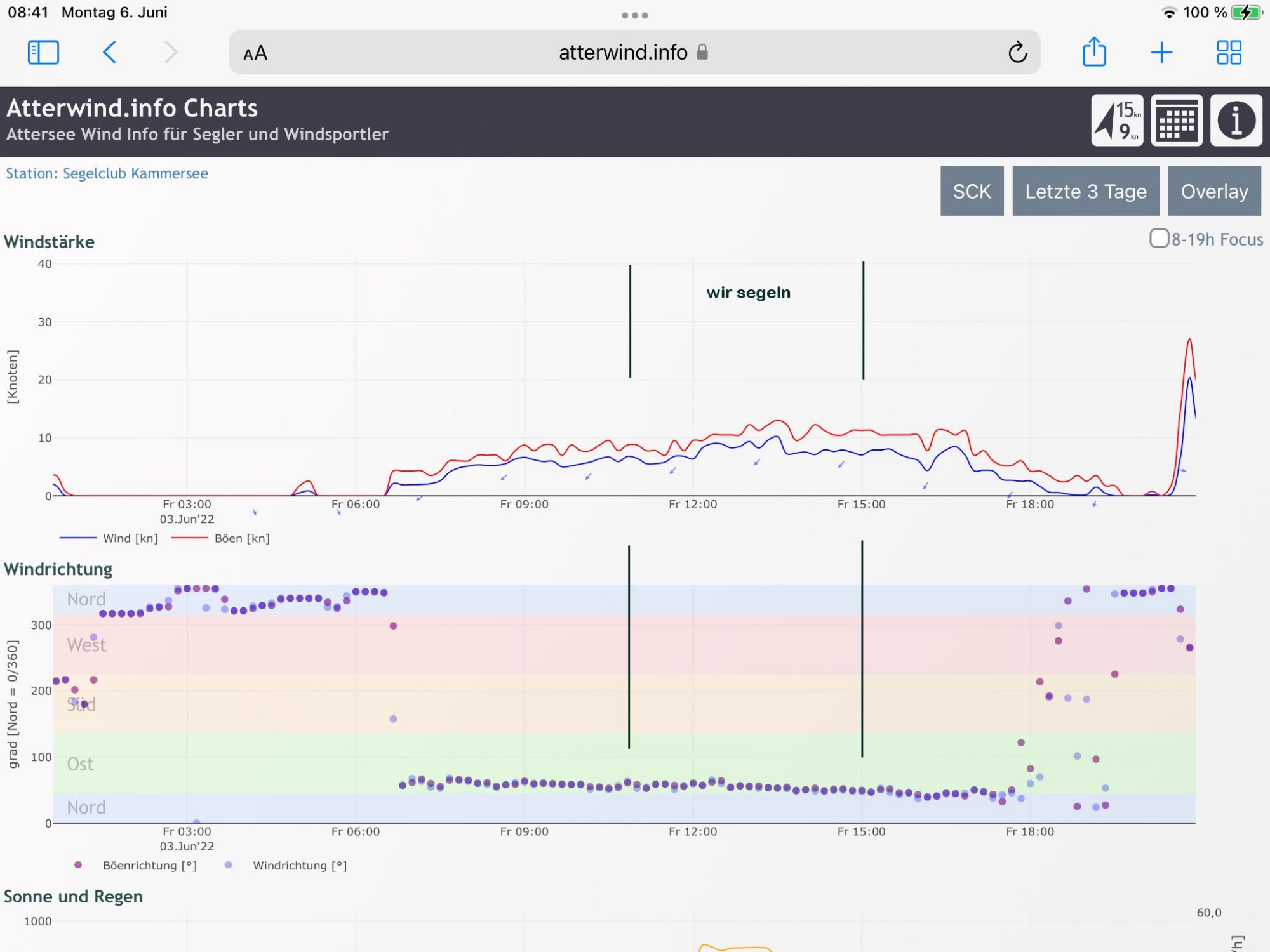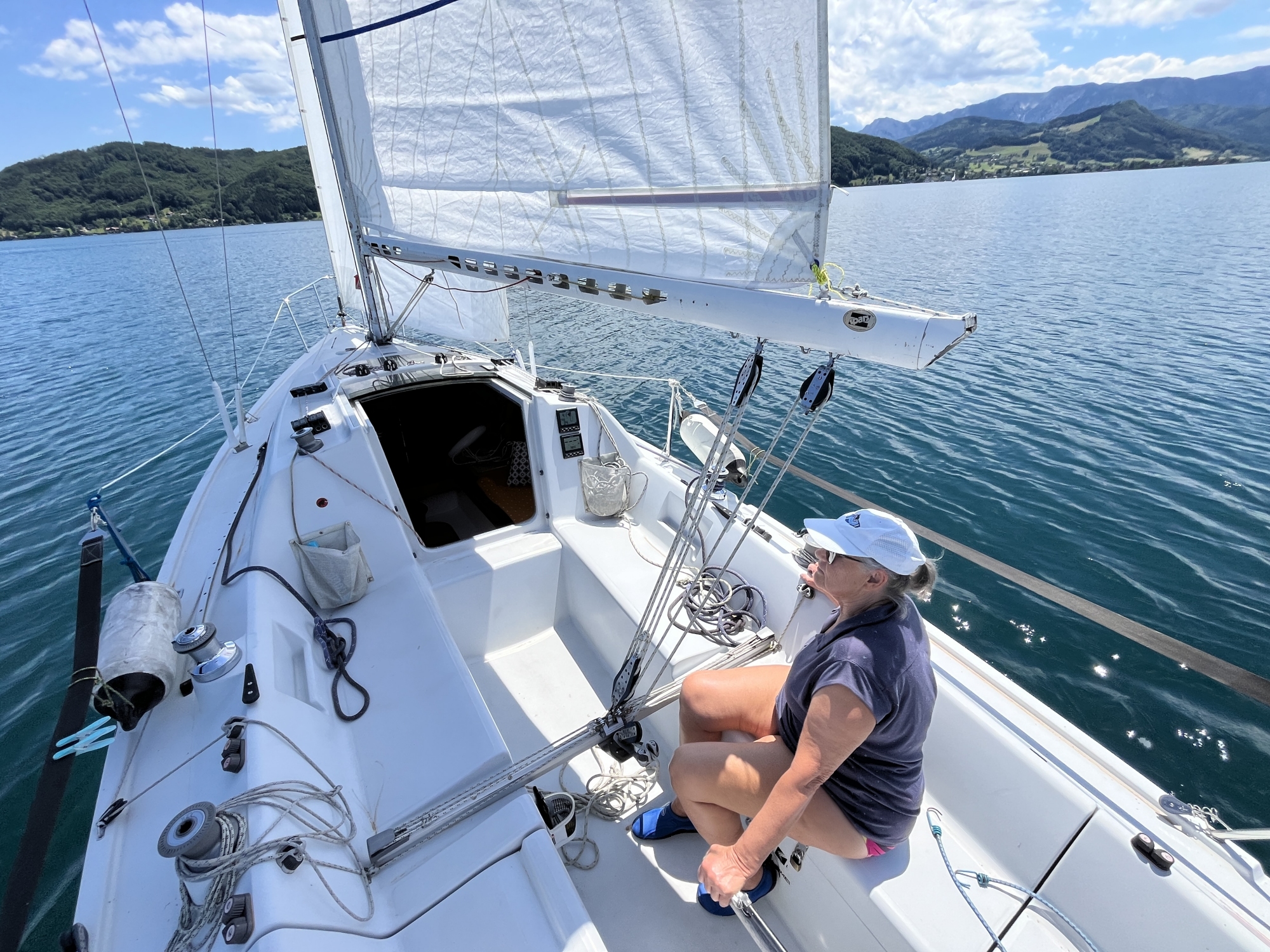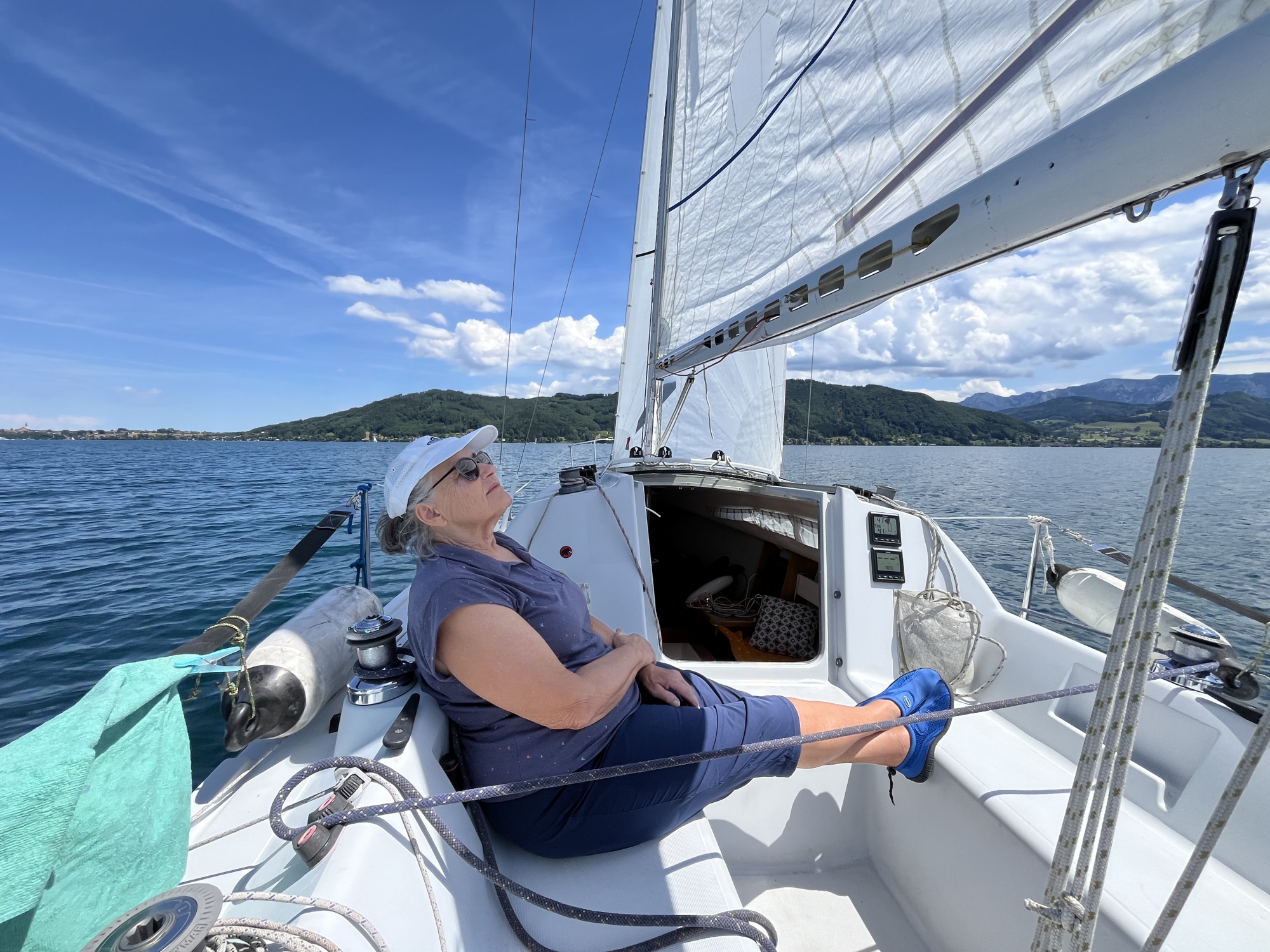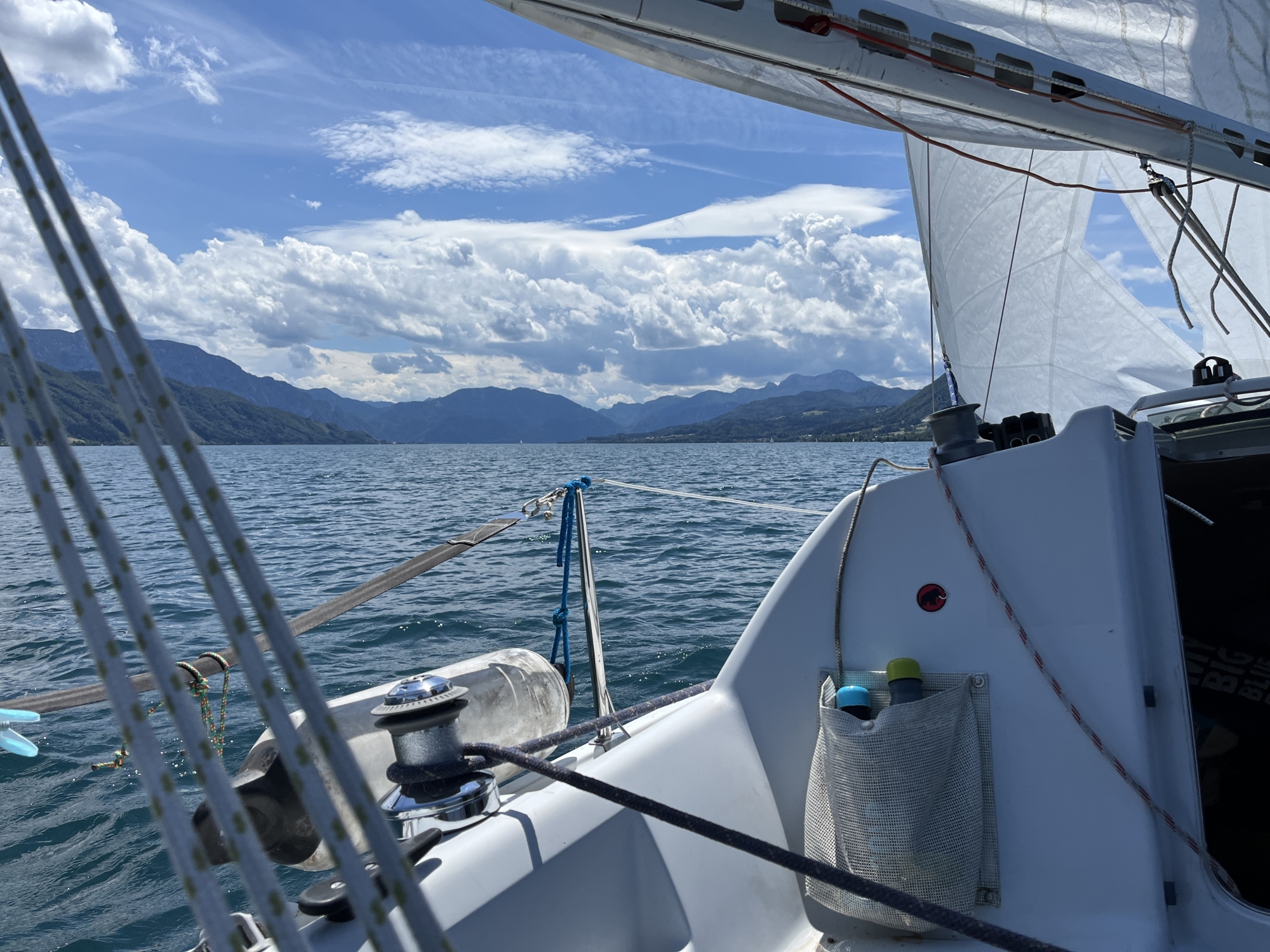 Nach der Schlechtwetterperiode waren wir am 17. Juni 2024 erstmals richtig segeln am Attersee. Der Wind war leicht und nicht stabil, aber aus Nord-Ost. Nach drei Stunden haben wir den Tag abgeschlossen.