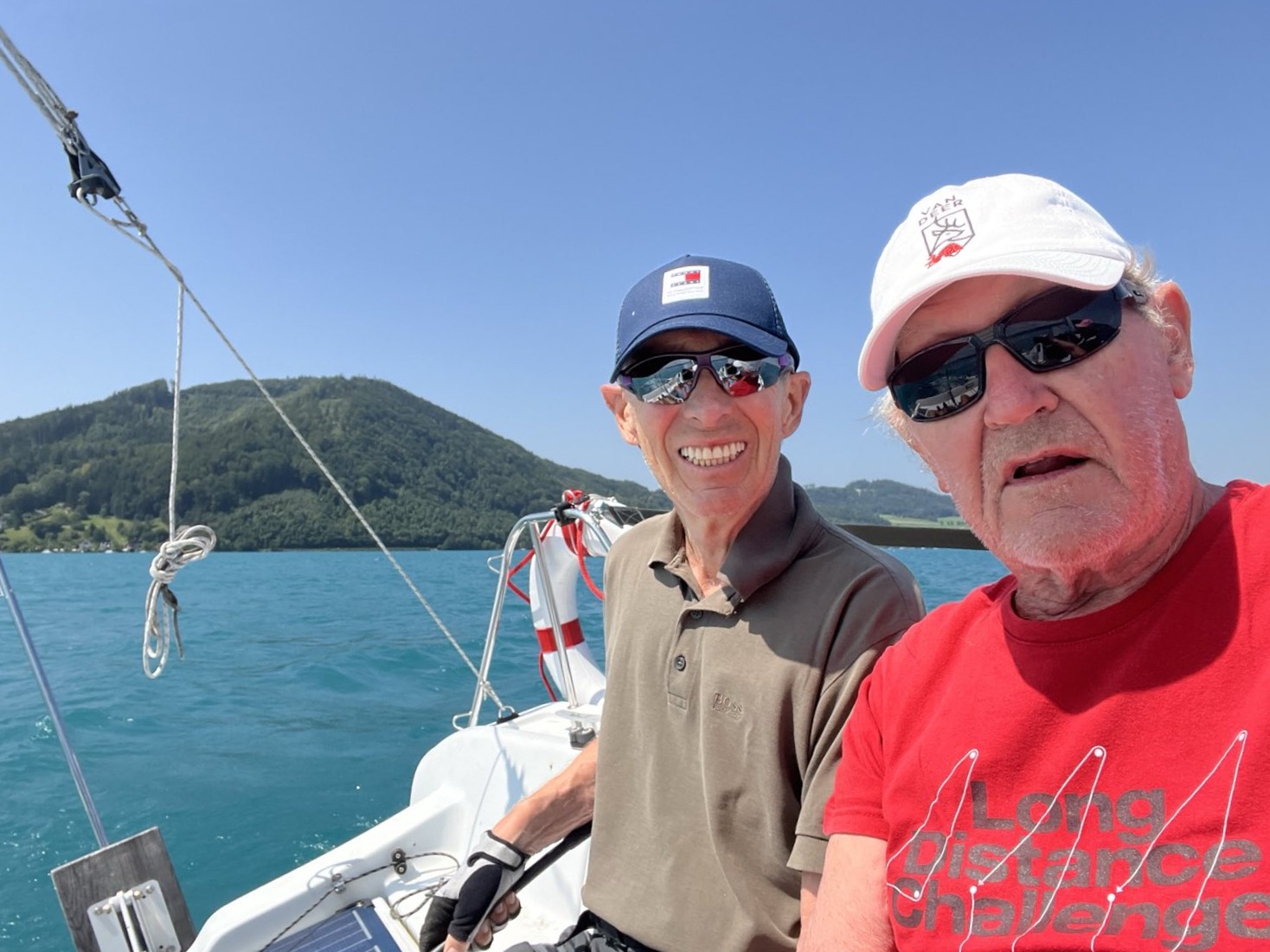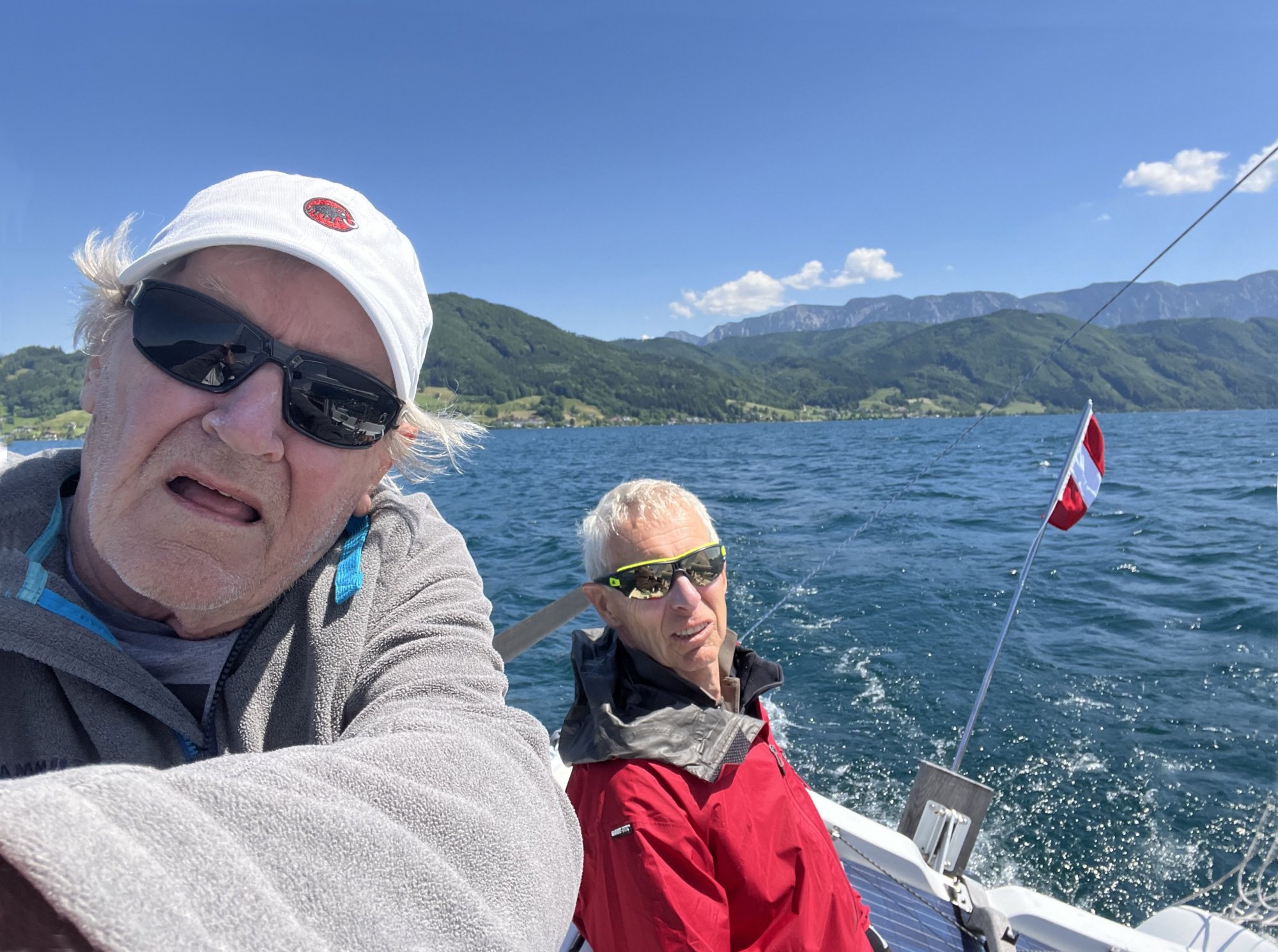 Am 13. Juni 2023 waren wir am Attersee segeln. In Nussdorf haben wir Helmut an Bord genommen und sind dann mit ihm zurück gesegelt. Es war ein Super Wind.