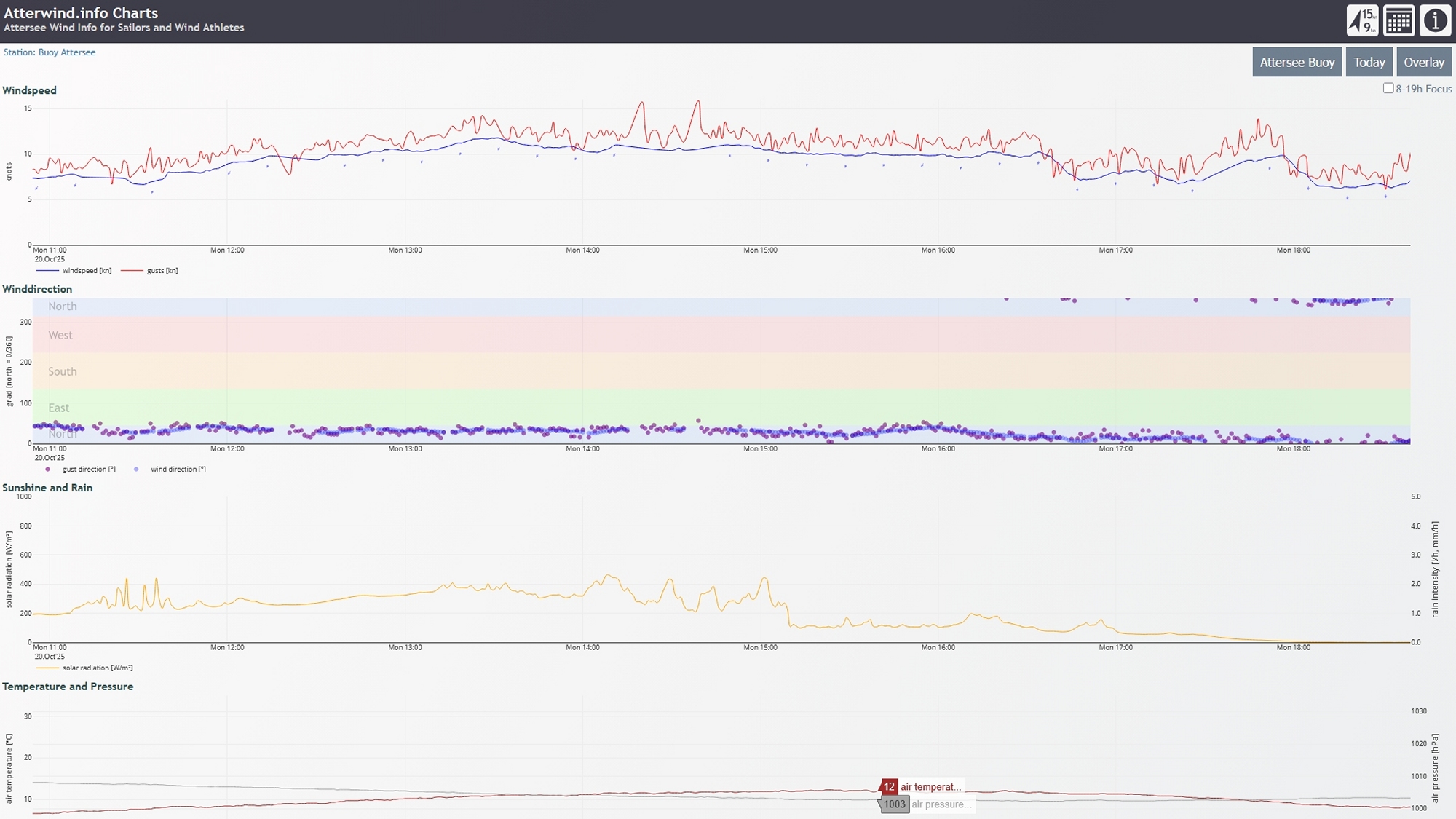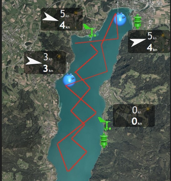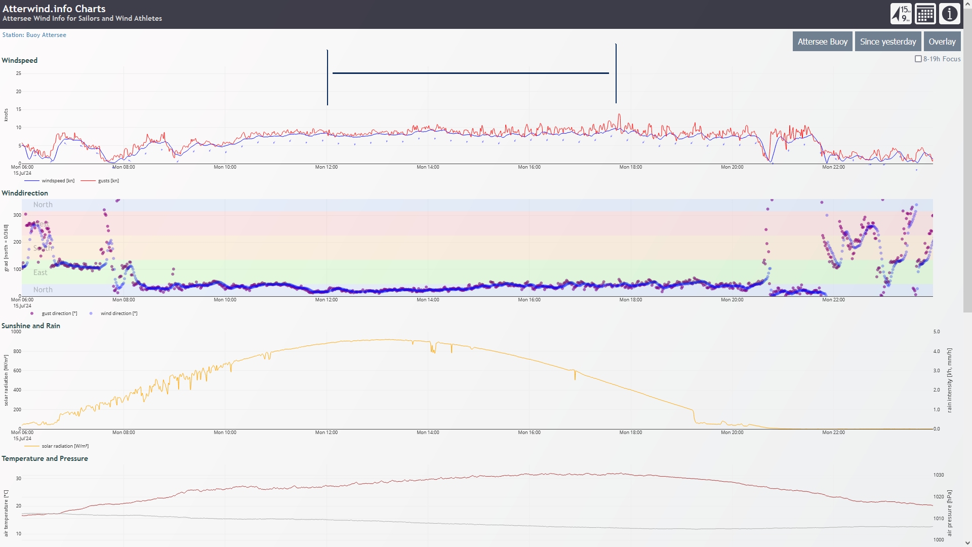 Das Winddiagramm - Die Route am 15. 7. 2024 - Sonnenuntergang in Weyregg