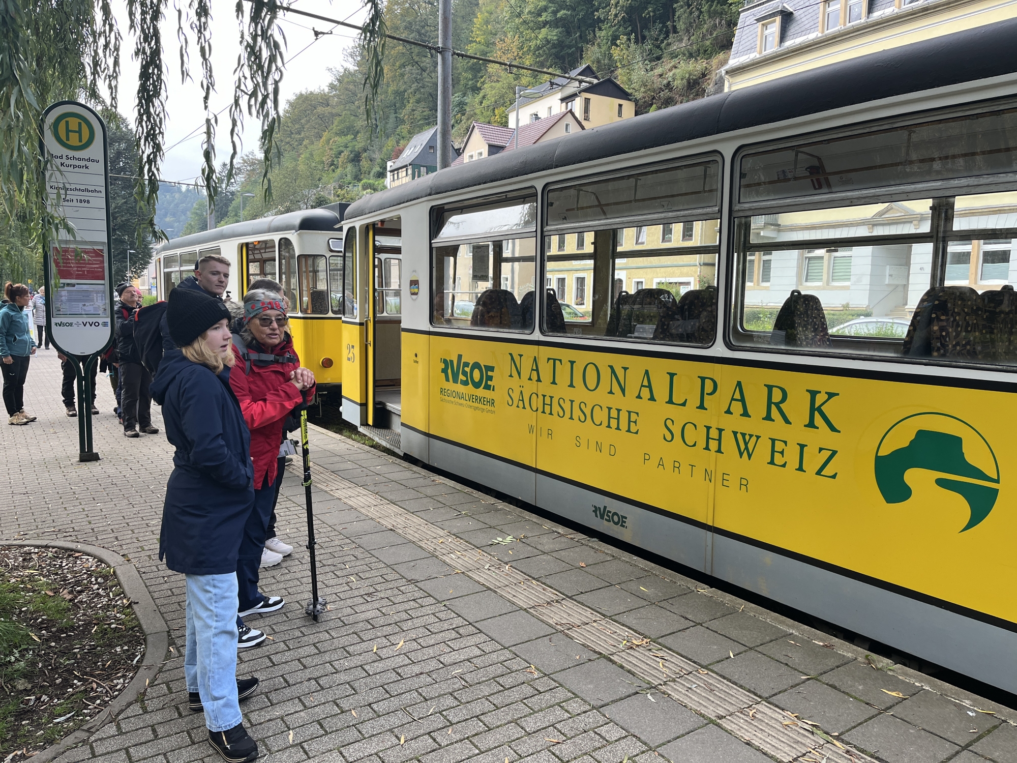 Von 4. bis 8. Oktober 2024 waren wir in Dresden. Das Wetter war leider nicht besonders auch schon bei der Hinfahrt hat es geregnet (Bild links). daher gab es grossteils ein Innenprogramm. Wir besuchten die Innenstadt mit der eingebrochenen Carolabrücke, vorbei an der Semperoper zum Zwinger, mit Besuch der Physikalischen Sammlung und dem Grünen Gewölbe sowie der Gläsernen Manufaktur - Home of VW ID Elektroauto Montagestrasse. Am letzten Tag war das Wetter etwas besser - daher fuhren wir in die Sächsische Schweiz nach Bad Schandau und fuhren mit der Strassenbahn ins Kirnitzschtal und wanderten zum Kuhstall durch den Wald. Tagsdarauf ging es zurück nach Steyr.