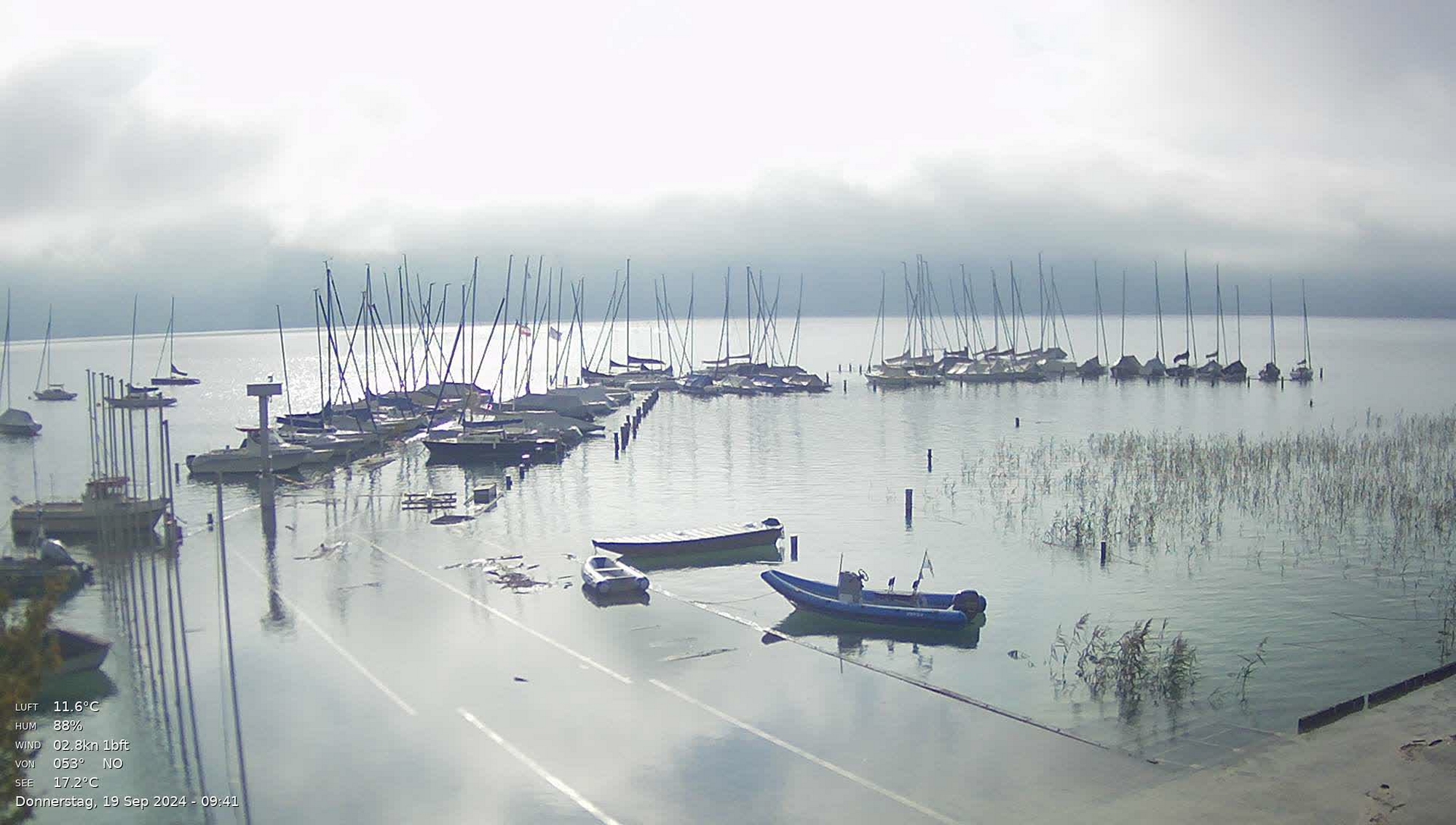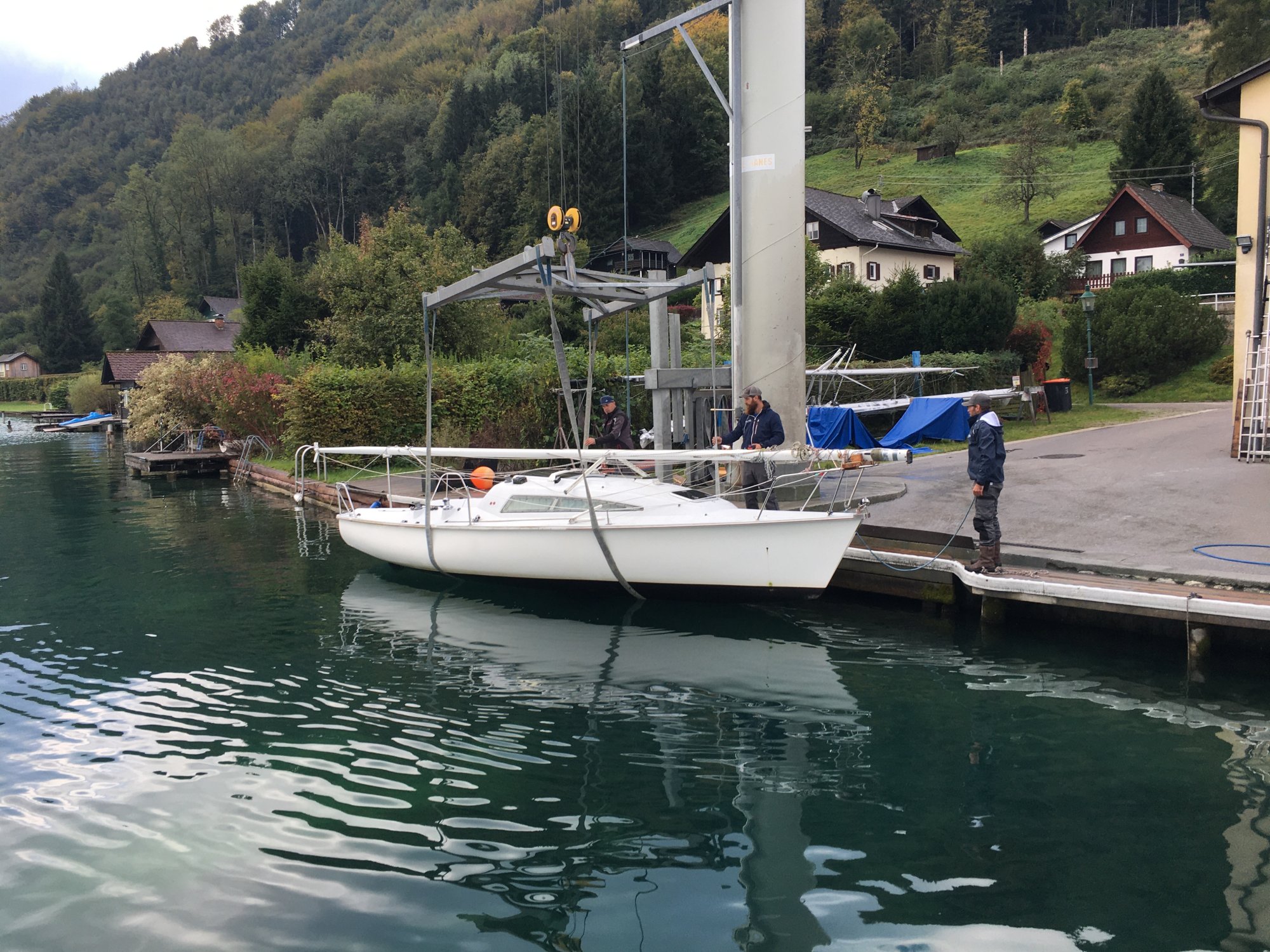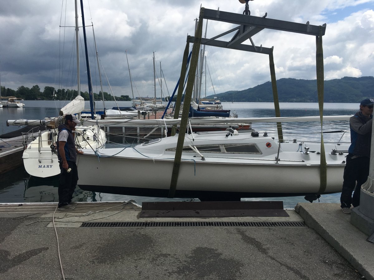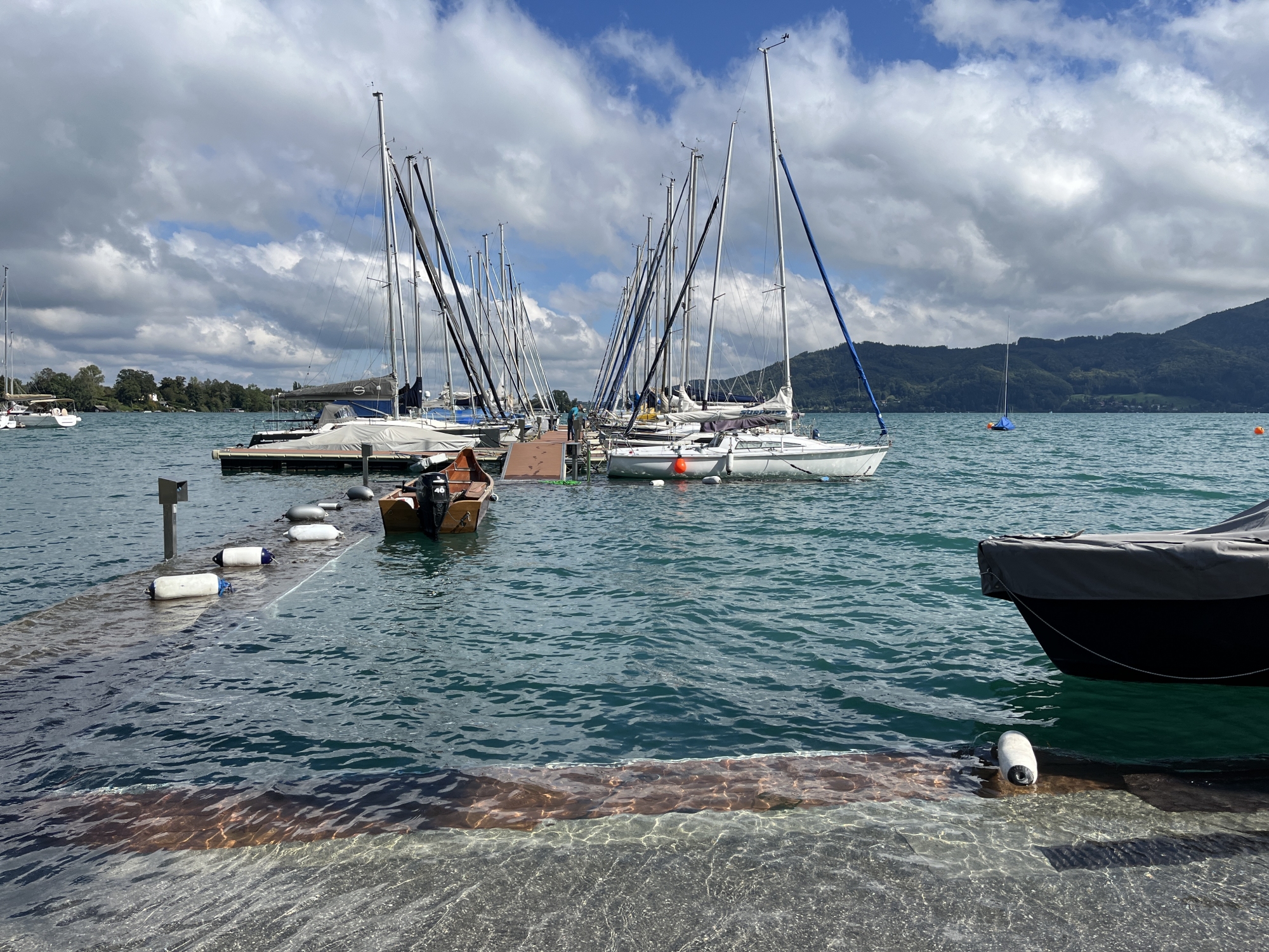 Nach den starken Regenfällen in ganz Österreich mit schwerem Hochwasser vorallem in NiederÖsterreich hat es dann auch den Attersee betroffen und das Boot war einige Tage nicht zugänglich, da der Steg unter Wasser war. Es dauerte ca. zwei Wochen bis der normale Wasserstand wieder eingestellt war. In dieser Zeit war nur eingeschränkt segeln möglich. Die grossen Wassermengen hatten eine ausgedehnte Trocknung des Bootes zur Folge.