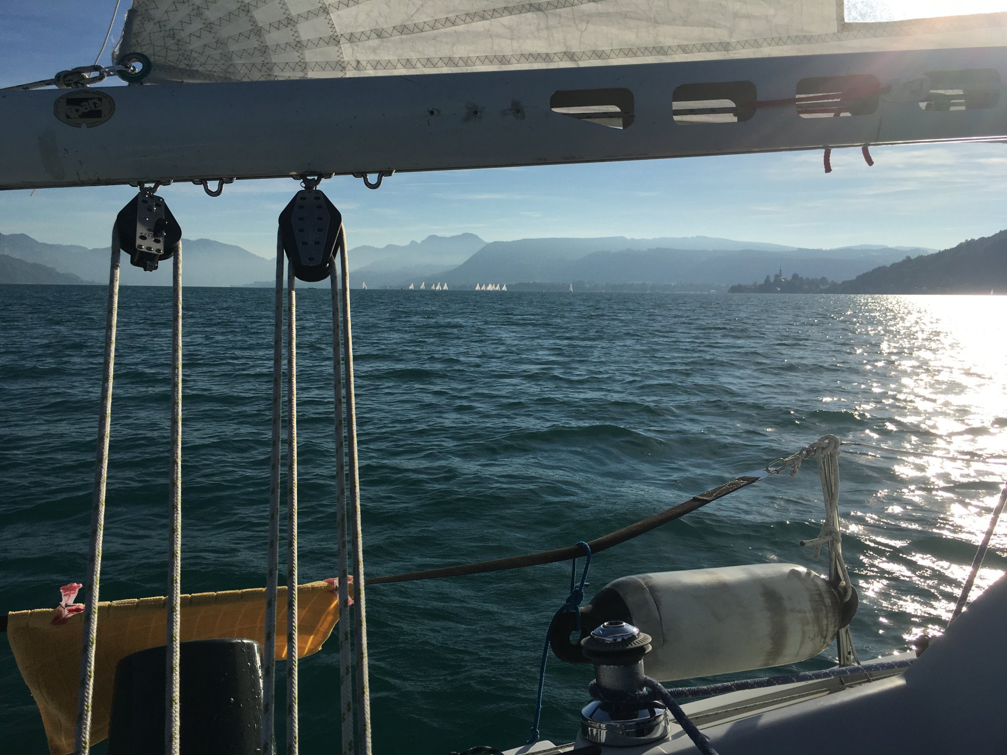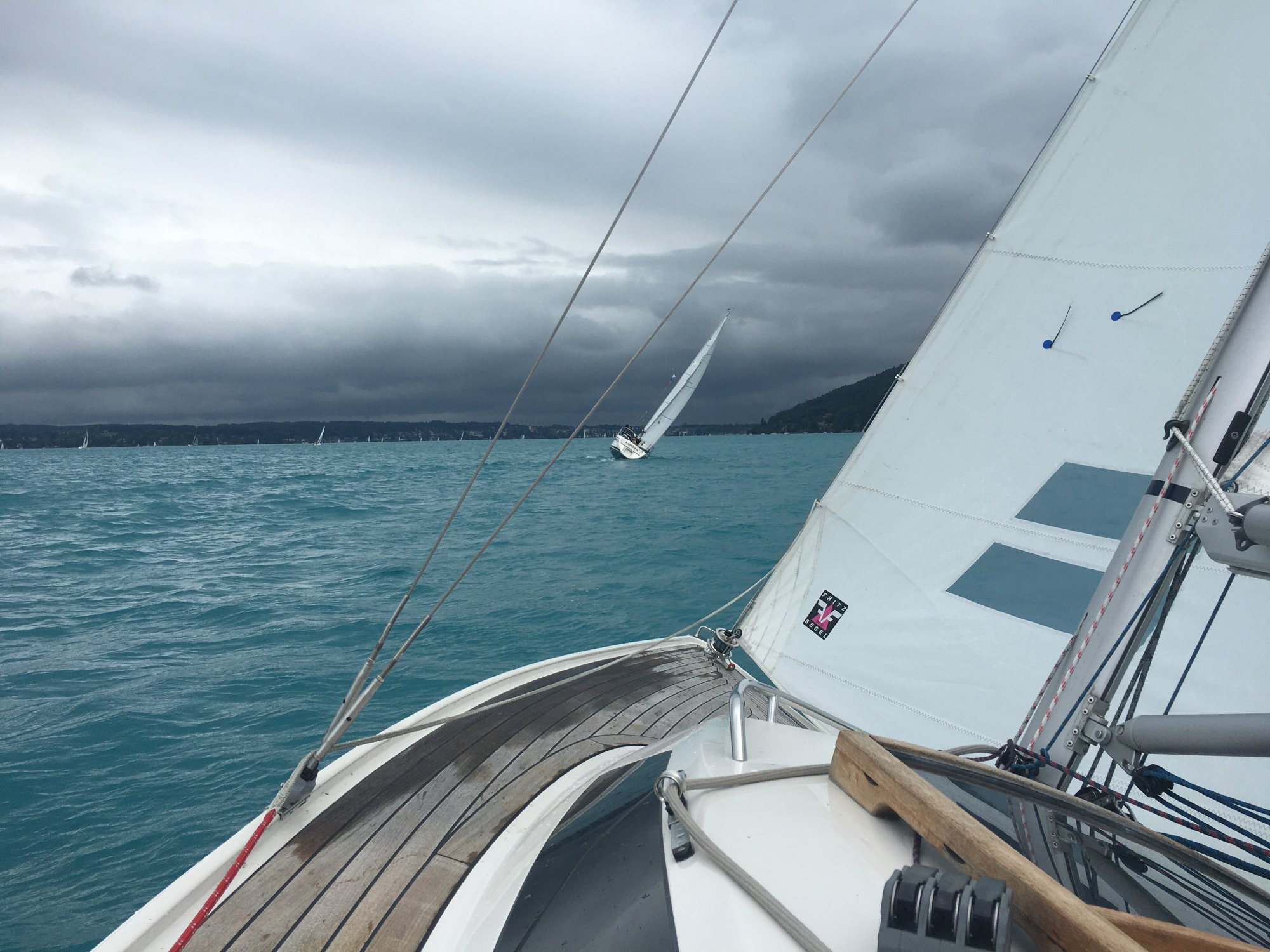 Am 6. August 2022 haben Georg und ich wieder an der Langen Wettfahrt vom Attersee teilgenommen. Zahlreiche Winddrehungen bei Leichtwind am Anfang, nach der Umkehr bei Burgau zuerst SW-Wind, der bei Nussdorf auf NW dreht und bis Kammer mit 18 kn ganz schön anzieht. Es beginnt zu regnen und mit Spinaker geht es ins Ziel.