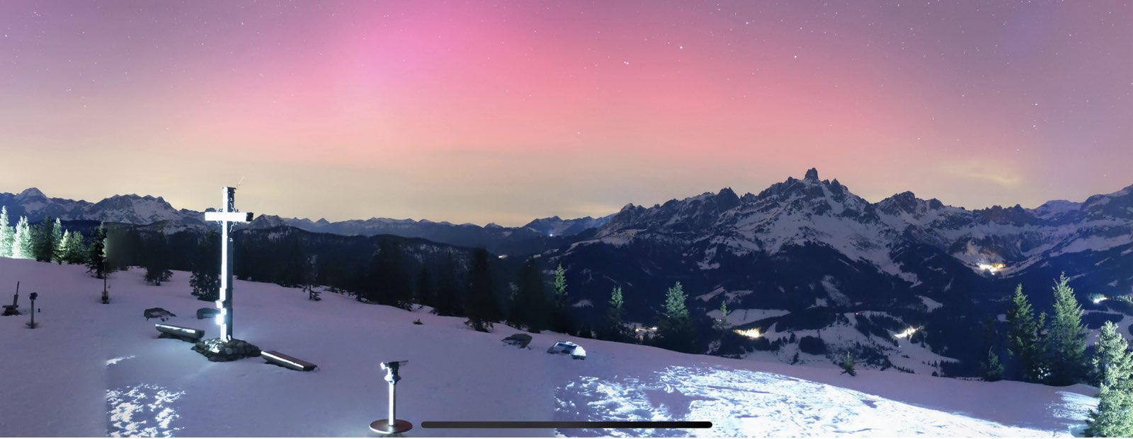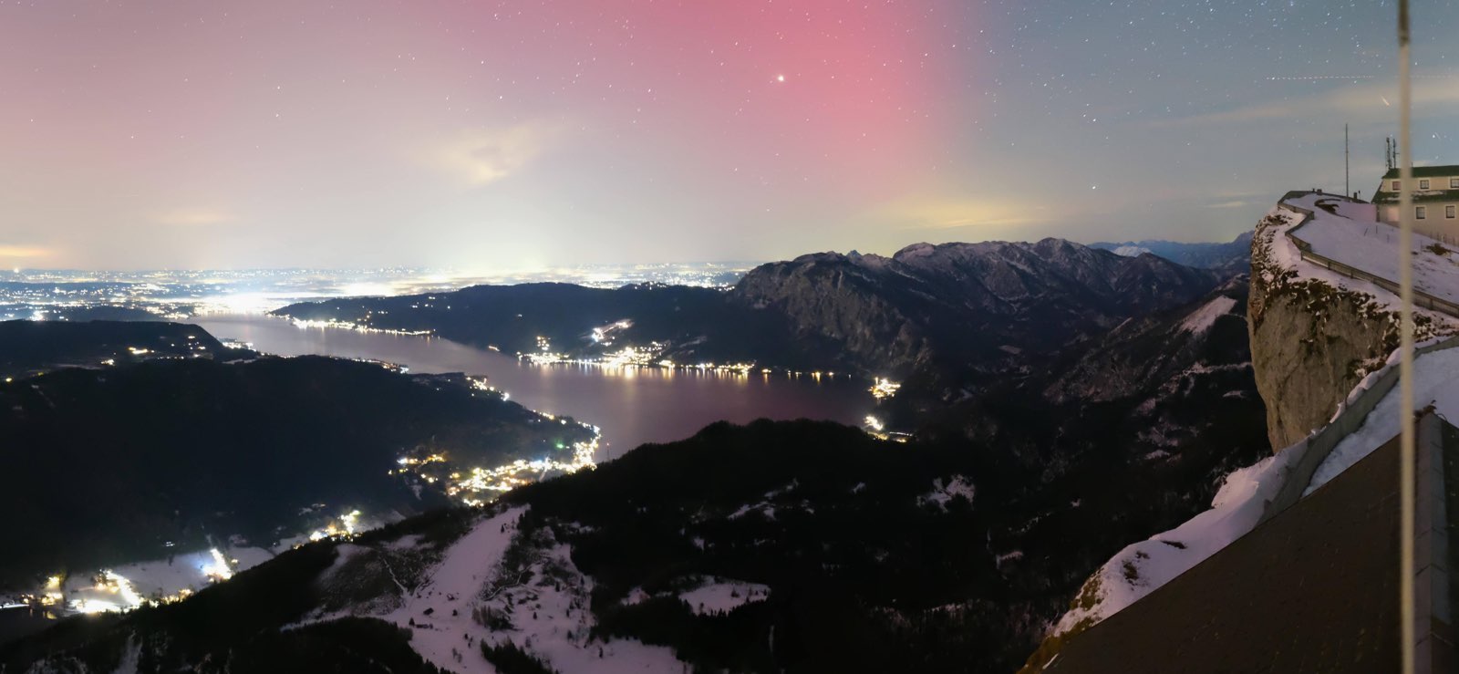 Am 1. 1. 2025 um 18:50 Uhr MEZ konnte man in Europa Polarlichter beobachten. Die Fotos sind das Copyright der Panomax Kameras am Schafberg, Rossbrand bei Radstadt und Pyramidenkogel bei Keutschach in Kärnten.
