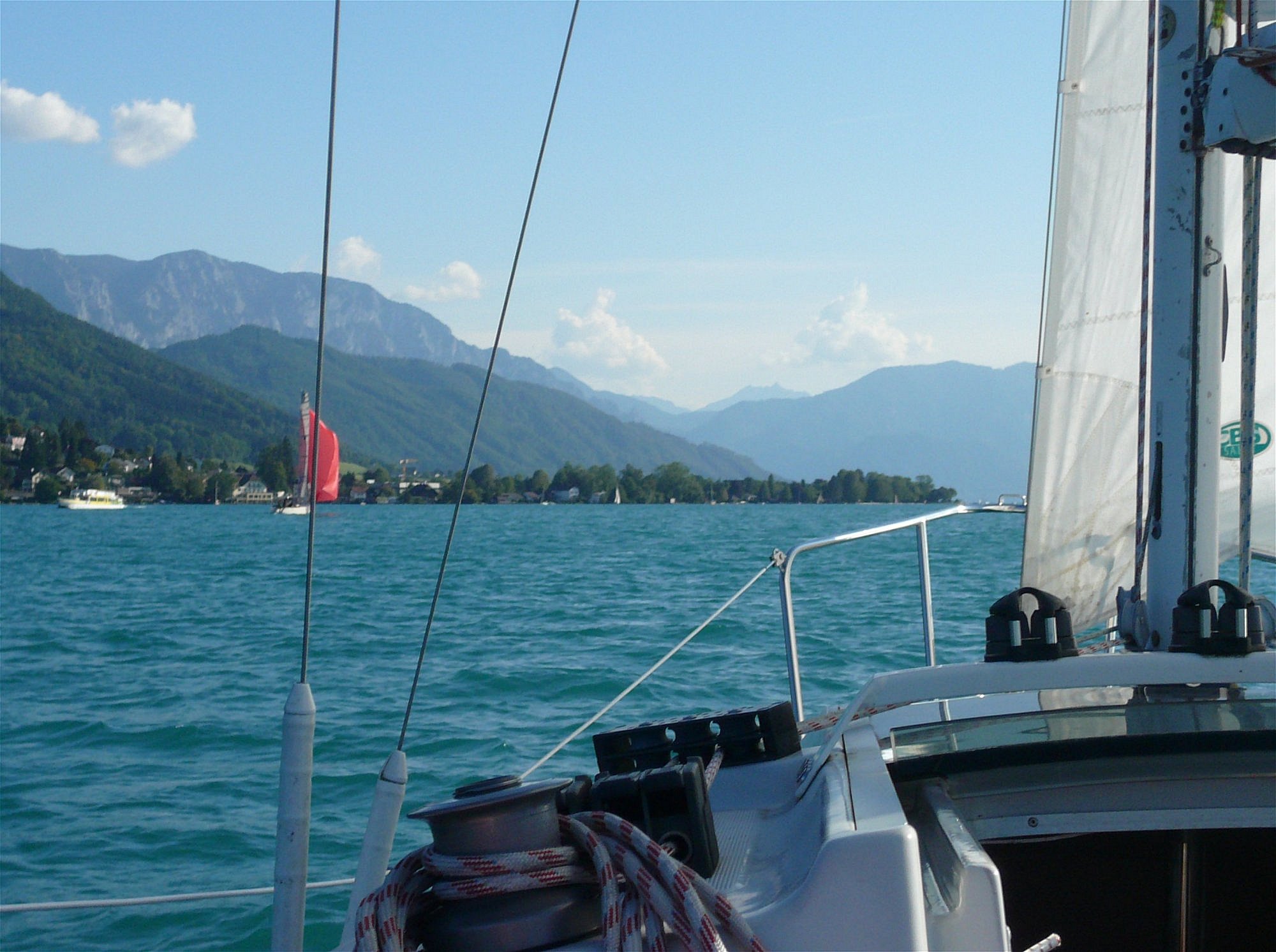 liegt in einer der schönsten Gebiete von Oberösterreich zwischen Linz und Salzburg im sogenannten Salzkammergut, einer Seenlandschaft. Umgeben von anderen Seen wie dem "Traunsee", "Mondsee" und dem "Zellersee" ist der Attersee der grösste und schönste wie viele behaupten. Berge wie das "Höllengebirge" oder der "Schafberg" bilden die voralpine Region des Alpenvorlandes, in der diese Landschaft eingebettet ist. Wir verbringen immer wieder gerne unsere Zeit in dieser schönen Gegend und wenn das Wetter mitspielt kann man die Zeit mit schwimmen, segeln, windsurfen, fischen, wandern, laufen, radfahren und bergsteigen bestens verbringen. Das Bild oben zeigt den Attersee vom Schafberg aus gesehen, aufgenommen mit der Panomax Kamera. Das zweite Bild zeigt unser Segelboot 'Surprise' vom See aus aufgenommen und das dritte Bild die 'Surprise' in der Marina Gebetsroither in Unterbuchberg.