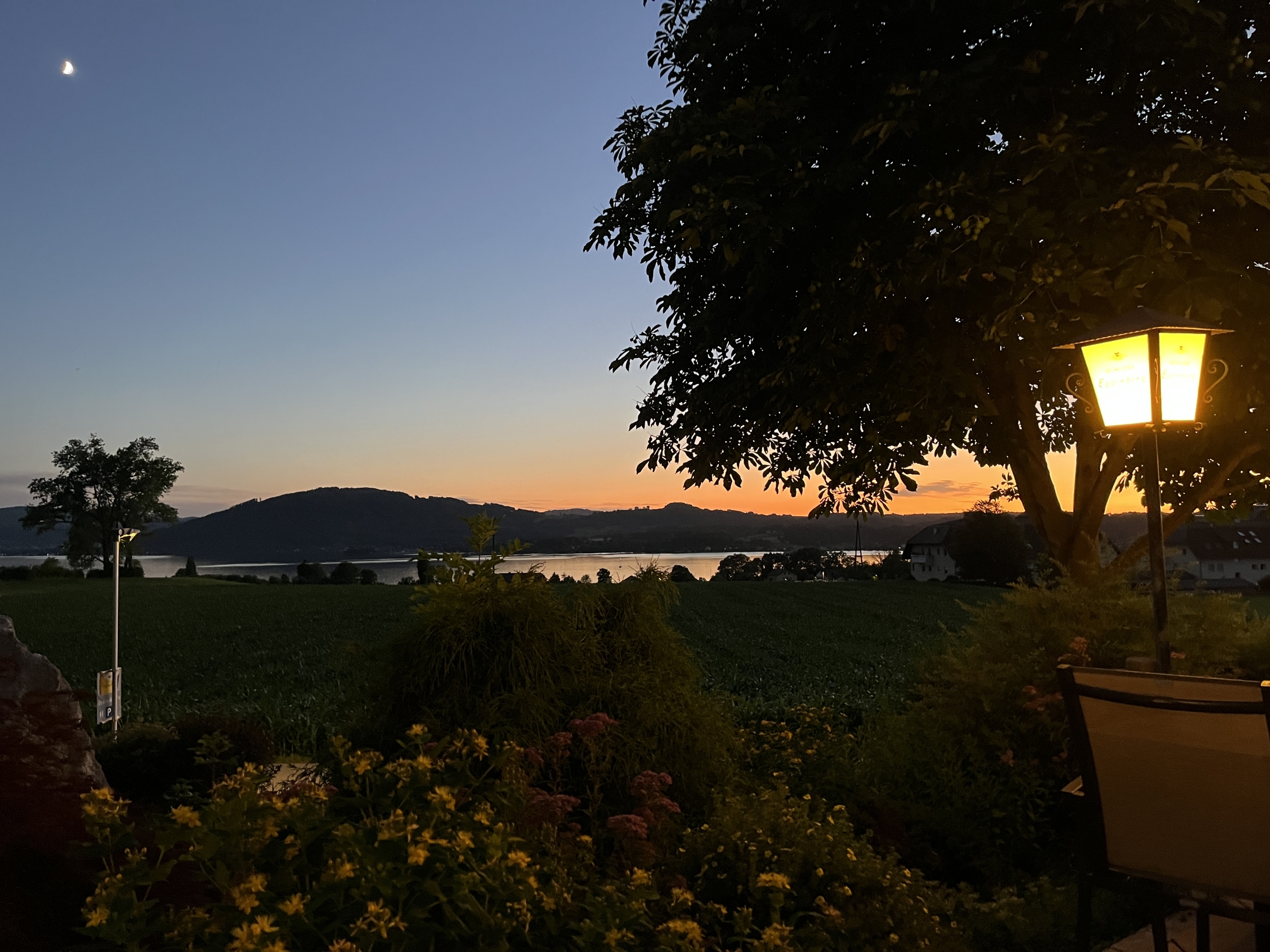 Am 1. 7. 2025 fuhren wir an den See um nach dem Segelboot zu sehen. Es wehte eine leichte Brise aus Nord-Ost und so entschieden wir zu übernachten. Am Abend kehrten wir ein in den Zenzn Stuben und kehrten erst gegen 22 Uhr auf das Schiff zurück. Die Nacht war ruhig und es gab keine Probleme. Leider wurde es am nächsten Tag sehr heiss und es war wenig Wind - so kehrten wir um ca. 14 Uhr nach Steyr zurück.