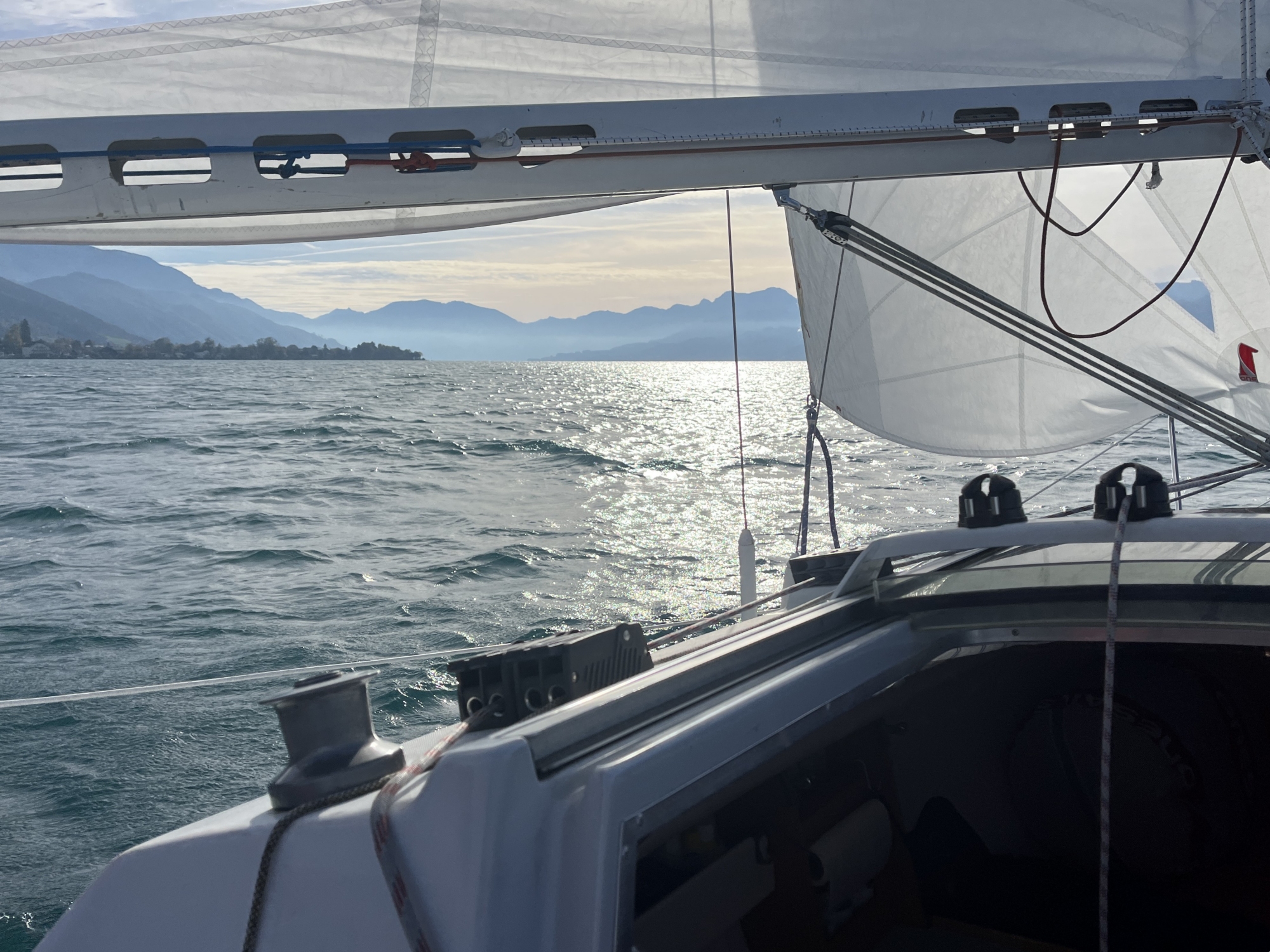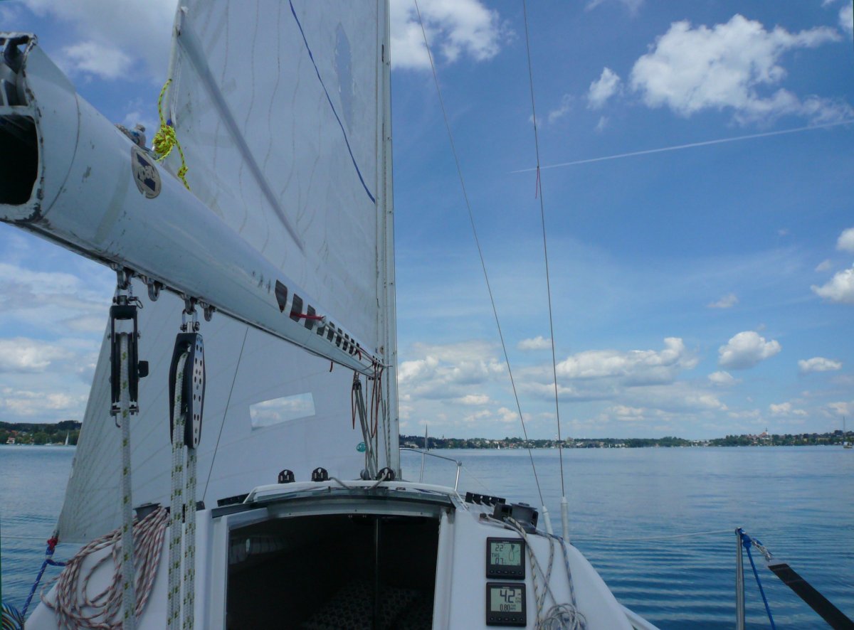 Am 16. 10. 2025 war leichter Rosenwind angesagt und wir fuhren um 13 h zum See. Anschliessend segelten wir nach Kammer bis zur blauen Windboje und fuhren dann zurück mit dem Genaker. Um ca 16 Uhr waren wir bei der Marina und bargen die Segel. Wir waren 7 bis 8 sm unterwegs und der Wind war bis 10 kn.
