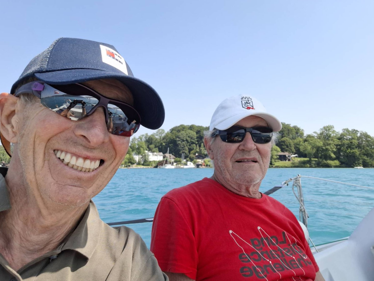 Am 4. September 2021 waren wir segeln am Attersee und haben uns mit unserem Jugendfreund Hans aus Bayern getroffen. Er hat zwei ganz liebe Hunde die auch mit an Bord waren.