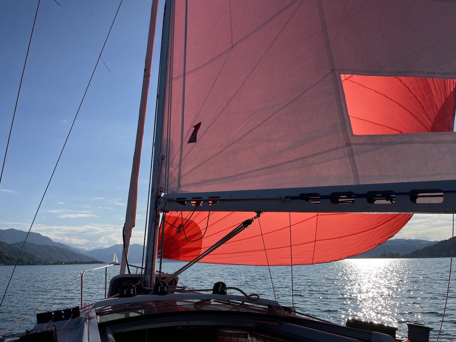 Am 12. Oktober 2023 waren wir segeln am Attersee. Mit dabei mein Schulkollege Helmut - wir sind bei Südwest nach Nussdorf gesegelt und haben bei der Alexenau dann umgedreht und den Genaker gesetzt und nach Norden gesegelt. Ein wunderschöner Segeltag geht in den Zenzn Stubn dann zu Ende.